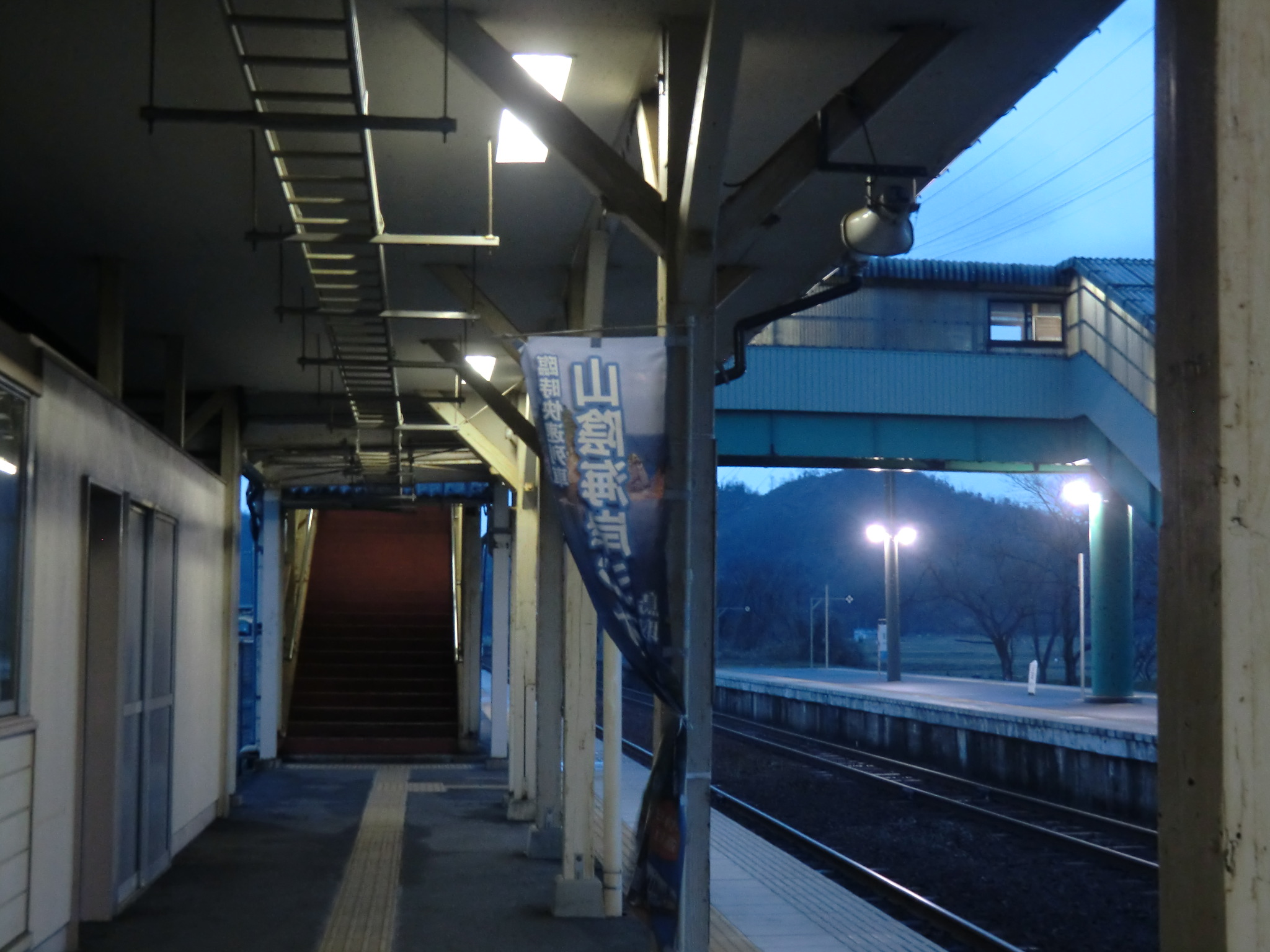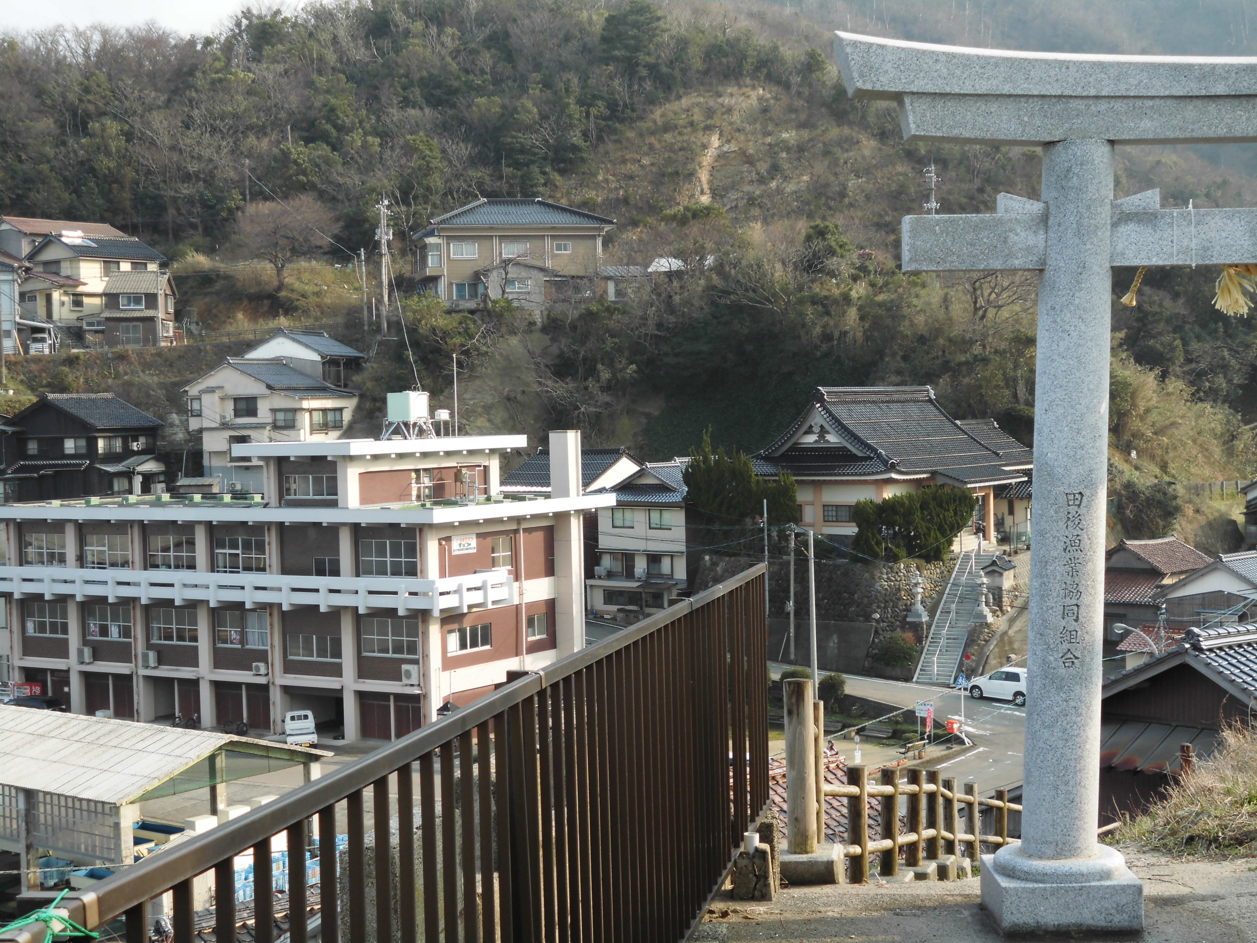 【8Fr】 □田後神社 参道 もうちょっとアングル下にするべきでしたね(;´ー`) 街灯はありませんでした。 □田後神社 参道 (2014/3/15追加) 作中では遙の家の分だけ階段の通路が長く取ってある為、鳥居の柱はありません。 【9Fr】 □田後バス待合所付近 田後が町営バスの最西の停留所にあたるため、この場所でUターンするために道路幅が広くなっておりちょっとした広場っぽくなっています。 手前の看板の類が忠実に再現されていました。 渚「おーい!」 □田後バス待合所付近 掲示板 渚「怜ちゃーん!」 □田後漁業協同組合 組合の建物の前が公園になっています。 作中ではベンチが消えて、代わりに写真左に写っているプランターが並んでいました。 怜が立っていた角の道を奥に入ってすぐ上が遙の家なのですが、遙たちはわざわざ別の道を廻って降りて来たのでしょうか…。 □田後コミュニティーセンター付近 (2014/3/15追加) 怜「いえ、僕も今来たところです」 □田後の集落 □岩美駅 似鳥「いいですね、浴衣、僕らも着て来ればよかったですね」 □岩美駅 似鳥「そういえば」 □岩美駅前 喫茶ロマン 作中では「マロン」になっていました(笑) 似鳥「先輩は」 □県道164号線 凛「まぁな」 □岩美町観光会館(以下同) (2014/3/15追加) (2014/3/15追加) □田後港 実際に駅からここまで歩くと…45分はかかります(;´∀`) ちなみに田後港、網代港共にカニと並んでイカもよく採れるそうです。ドラマCDと併せて忠実ですね(笑) 昨年は9Frのこのお祭りを再現したイカ祭りイベントが開催されましたが、それ以前から田後港では毎年秋に大漁祭を開催されており、カニや魚の”掴み”はありませんが”釣り”大会は開催されているそうです(笑)ただし参加は小学生以下限定だそうですが(゚∀゚) □田後薬師堂(田後神社) 真琴が遙に話していた「あの神社、水神様も祀ってあるし」は、1Frでも触れた実際に田後神社にお祀りしている恵比須神のことと思われます。 □田後薬師堂(田後神社) (2014/3/15追加) □田後神社 鳥居 遙の家に続く鳥居ですが、作中ではもう少し大きく描かれており左右の玉垣の向きも異なりますので、別にもう一ヶ所鳥居がある設定かもしれませんね。 真琴「で?何かあった?」 渚「実は凛ちゃんがお祭りに来てて」 □田後バス待合所付近の自動販売機 作中では外観とラインナップからキリンの自販機っぽく見えましたが、実際はコカコーラでした。 似鳥「松岡先輩…」 □田後漁業協同組合前の道路 似鳥の後ろに組合の建物が見えているためこの道だと思うのですが、海に面している写真右側は建物があり港を見ることはできませんでした。 □岩美西小学校前 (2014/3/15差替え) □岩美西小学校前 (2014/3/15追加) 岩美町内には現在小学校が3つありますが、作中の学校周辺のモデルは岩美西小学校と言われていますね。 この写真は一致度は低いですが周辺道路のモデルになっていますので参考程度に。 (2014/3/15追加) 岩鳶小学校は場所的にはガイドブックによると遙の家の近くにある設定になっており、地図と比較すると恐らく「旧田後小学校」であると思われます。 旧田後小学校は現在校舎はなくなっており、避難場所としてグラウンドと体育館(田後コミュニティーセンター)、そしてプールのみが残されている状態です。フェンスに囲まれてますし、プールはこれがモデルかな?と思うのですが、坂の途中にある為横方向からは撮影できないのが残念です。この写真はプール脇の畑と民家の間にある道路から撮影しました。 県道155号線からの撮影。 フェンス脇の木は残念ながら桜ではありませんでした。 □岩美西小学校 南側の歩道 (2014/3/15追加) 実際には歩道に柵等なく一致度も低いですが参考程度に。 □岩美西小学校 南側の交差点 □岩美西小学校 南側 (2014/3/15追加) □田後港神社 (2014/3/15差替え) 田後神社のすぐ近くにあります。 □田後港神社 □田後港神社から眺めた田後港 真琴「ハルと、皆とリレーを泳げたことが、俺は嬉しかったよ」 □田後漁業協同組合 □田後港神社からの海の眺め (2014/3/15差替え) □田後港神社 鳥居 (2014/3/15差替え) 渚「ハルちゃん!今の言葉本当!?」 □田後港神社 鳥居 □田後港神社 鳥居 真琴「本当に俺が貰っていいの?」 □田後バス待合所付近 怜「せっかくだし名前付けませんか」 □田後バス待合所 怜「それはちょっと」 遙「鯖鰹鮪鯵」 □田後コミュニティーセンター前街灯 (2014/3/15差替え) 御子柴「松岡…」 □岩美駅1番のりばホーム 御子柴「何してんだお前」 似鳥「ちょうど電車来るところですよ」 □岩美駅 1番のりば(以下同) ここで5Frで少し考察したことについて このホームで電車を待っているということは鮫柄学園は東浜方面にあると考えられますが、1Frで遙たちが鮫柄学園に向かう電車のシーンで渚と真琴が寝てしまうくらいの距離は乗っていたと考えると、この世界ではやはりもっと東まで同じ県が続いていると考えるのが妥当ですね。 でも実は鮫柄は兵庫の学校という線も捨てがたいです。ス
