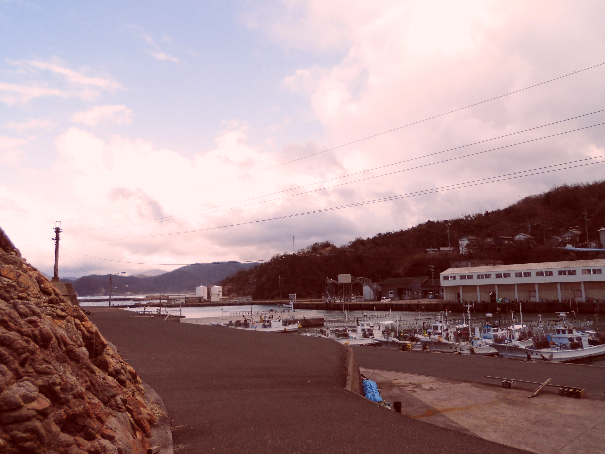 ■タイトルバック □田後港 田後港神社の参道の階段からパノラマ撮影する事できます。 今回自前のiPhoneOSをやっと7にバージョンアップして挑みました! アニメ本編と改めて見比べると細部まで一致している様に感動します(´ω`*) □田後簡易郵便局前の路地北側のT字路 田後では親切な地元のおじいさんが声を掛けてくださり、マンホールの場所と菜種五島の場所までを案内してくださいました。 もっと大きな鉄製のマンホールを予想していたので実物の小ささ(プラスチック製で直径30センチ程、下の田村のおばあちゃん家前の写真に写っているマンホールと同じサイズです)にびっくりしました。 同じマンホールが近くにいくつかあり、田後の集落自体が迷路のような複雑な路地で構成されている事もあって、これは確かに見つけにくい…と思いました。 □田後の集落 □田後神社 参道 観光協会のサイトによると、田後神社は田後村が独立した際に、荒砂神社から漁業の神、恵比寿のみを氏神として持ち出しお祀りをするようになった神社だそうです。 宮司さんとお話しする機会があったのですが、江戸時代に田後港近くで島根から漁に出ていた漁船が沈没した事があったそうで、そのこともあって田後地区に漁業の神を祀る事が考えられたといったお話を伺いました。 凛の父親が亡くなり真琴のトラウマになった様な出来事がこの場所で本当にあったという内容に畏怖を感じました。 □田後神社 参道 □田後神社 参道 □田後神社 手水舎付近 遙の家は架空なのでもちろんありませんが、写真左の空間に石垣で高さを合わせ、そこに家が建っている設定ですね。 ちなみにその部分は更地だったため土地を購入すれば七瀬家が実現するかも…しれません。 前述の地元のおじいさん曰く元は田後には300世帯暮らしていましたが、今は170程に減少してしまったそうです。建っている家も130戸程は空家だそうで、集落を歩いていると更地も目立ちました。 □県道155号線 浦富海水浴場前 □カラオケルームパインの看板を真横から (※車のナンバー部分を加工しています) □県道155号線 浦富海水浴場前 □田後港 (2014/3/19追加) 作中ではもう少し上からのアングルですが、写真左の岩山によじ登らないと撮れない為実際には難しいアングルです。 渚「へぇー、江ちゃんも岩鳶高校に入ってたんだ」 □田後公園展望台 遙の家からの距離が理にかなっていると思いました(笑) □田後公園展望台 □田後公園展望台 □田後公園展望台からの景色 写真真ん中の海中に張り出した岩が似ていると思います。 冬の日本海は波が高く波の音が頻繁に大きく響いていました。 もたれ掛って寝る渚を見る遙 □山陰本線 キハ47形車内 系統が異なりますが参考までに…。 恐らく作中の電車はキハ126系がモデルで、ロングシート部分の優先座席マークを消去したものだと思われます。車内のロングシート部分の雰囲気はなんとなく47形の方に似ている気がしました。今回126系に乗車する機会がなく残念でした。両運転台タイプの121系には乗車する機会があったのですがわりと満席で人がたくさんいたため撮影を諦めました(´・ω・`) 【2Fr】 □県道155号線 菜種五島付近 □県道155号線 菜種五島付近 写真右側に写っている島が菜種五島の内一番大きな菜種島という島です。春になると島に菜の花が咲くことからついた名前で、案内してくれたおじいさん曰く、昔は本当に島全体が黄色くなるくらい菜の花が咲いていたそうですが、近年は花の量も減って半分ほど黄色くなる程度になったそうです。またこの島にはイタリアの青の洞窟に匹敵する綺麗な洞窟がありますが、浦富海岸には他に大小合わせて160程の小島があり、それらは岩の性質から縦に割れやすく、島々のうち140程の島には割れたことによってできた洞窟があるそうです。6Frで渚と怜が好島の洞窟に避難していましたが、このあたりの特徴からできたシチュエーションでしょうか。夏は遊覧船で観光することができるのでぜひ夏にも訪れてみたいです。 今回はここまでです! 順に最後までご紹介していきますのでよろしくです(´∀`)