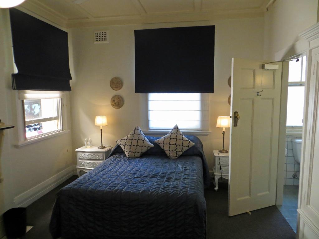 今回ご紹介する箇所も前回の地図に追記しました↓ ■遙と凛の宿泊先ホテル □The Russell Hotel ストリートビューより引用。 ビューを右へスライドさせると、ラッセルとローリーの車が去って行った後の凛の後姿のカットの背景に映る向かい側の歩道等も見ることができます。 自分で撮影した写真↓ 12話放送中リアルに思いっきり見覚えがありすぎて、「あー!」っと声を上げてしまいました(笑) ちなみにこのホテルの向かい側が、エンディングのポリスな凛&宗介のカットの場所です。 私事なのですが、実はこのホテル、オーストラリア旅行に行こう!と思い立った当初に、アンティークなホテルがあると聞いて調べ、宿泊を検討していたホテルでした…。 しかし日本の旅行会社の通常ツアーで扱っているところがなく、自分だけでホテルと航空券を別々に手配する度胸もなく、結局パックツアーでシティ中心部にある大手チェーンのホテルに泊まってしまいました。そこも歴史的建造物をリノベーションした建物でとても良かったのですが、今となってはちょっと後悔。次回は絶対ラッセルホテルに泊まります!(笑) サイトの案内等によると、1800年代に建てられた建物で、内装も当時の装飾が残っており、各客室は暖炉や出窓がある大変趣深い部屋となっているそうです。 3階建てのこじんまりとしたホテルで、1階は作中では描かれていませんでしたがパブになっています。 フロントに並んでいたルームキーにはキーホルダーが付いていましたが、実際にも付いているのでしょうか…? 最初見たときは野菜や肉の断面図のような、食品サンプルキーホルダーかと思ったのですが、凛が手に持っていた鍵に付いていたキーホルダーをよく見ると、羽を広げたクジャク?のようなキャラクターに見えました。 ■ホテルの廊下、部屋のドア □ラッセルホテルの廊下、部屋のドア ※引用元⇒「トリップアドバイザー」投稿写真 トリップアドバイザーで投稿されていた写真より引用です。 廊下、扉ともに忠実に再現されている事がわかります。 部屋のナンバープレートの装飾もそのままですね!26号室…おしい! ■25号室のベッド □ラッセルホテル25号室内 ※引用元⇒「トリップアドバイザー」投稿写真 こちらもトリップアドバイザーで投稿されていた写真より引用です。 部屋ごとに内装が異なる事もこのホテルの特徴となっていますが、部屋全体の色調、ベッドカバーの色、枕の柄や壁の丸い装飾、家具の配置からこの部屋がモデルで間違いないと思われます。 写真の通りにサイドテーブルにミネラルウォーター2本も置いてありましたね(笑) そしてこの部屋は本当に25号室です。 なぜ言い切れるかと言いますと、根拠はラッセルホテル公式サイトの部屋案内のページで掲載されているこの写真↓ ※引用元⇒「Russell Hotel公式」 上の投稿写真と同じ部屋です。なんだか投稿写真とは部屋の雰囲気が違って見えますが、暖炉、鏡、花瓶のデザインまで完ぺきに一致しています。 さらにこちらが『Superior Room With Ensuite』の部屋の1つとして掲載されており、画像のファイル名が「Room-25-JPEG」だったので25号室で間違いない!はず…!です。 なおエンスイートとはヨーロッパのホテルでよく見られる部屋タイプ表記で、部屋にバス(バスタブなしでシャワーのみの場合もあり)とトイレが付いている部屋という意味です。 ヨーロッパの高級ではない一般的な宿泊施設には個別のバス・トイレが付いていない部屋が多いため、部屋にバス・トイレが付いている場合は「エンスイート」と表記してアピールしています。 ラッセルホテルもこのスタイルになっており、エンスイート以外のお安い部屋は、全て洗面所・シャワー・トイレが共用のため、もし宿泊を考えている方がいらっしゃったら注意が必要です。(洗面所すらないそうです) (Free!目的の方は何が何でもこの部屋に宿泊すると思うので杞憂かと思いますが、一応(笑)) またスタンダードにもスーペリアにも、バス・トイレ共有のタイプとエンスイートタイプがあり、この2タイプあるというところが今回凛がトラブルになってしまった原因と推測できます。 (↓以下トラブルの経緯の推測) ラッセルホテルの一番安いタイプのお部屋はスタンダードになりますが、スタンダードだとエンスイートでもベッドはダブルベッド1台と公式サイトに記載してあります。 その次のランクのスーペリアの場合、バス・トイレ共同の『Superior Room + Shared Bathroom』→「ダブル、またはシングル2台」(=ツインルーム有り)、エンスイートの『Superior Room With Ensuite』→「ダブル、またはクイーンサイズ」(=1台)と記載してあります。 ここで勘違いが生じたのかなと…。 フロントでのお姉さんとの会話で「予約の時にも伝えたはずよ」と言われている事から、恐らく電話、メール等で直接ホテルに予約を行った可能性がありますが、凛は部屋タイプの説明などを受けて ①自分ではバストイレ共同の『Superior Room + Shared Bathroom』の、シングル2台